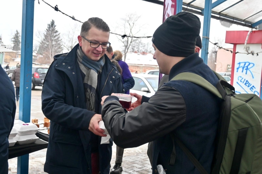 "To już stało się pewnego rodzaju naszą tradycją lewicową, że po prostu dzielimy się posiłkiem. W Łodzi dzielimy się już od kilkunastu lat, ale kilka lat temu rozpoczęliśmy taką akcję w całym województwie łódzkim. W poprzednich latach byliśmy w Zduńskiej Woli, Sieradzu, Piotrkowie Trybunalskim, Tomaszowie Mazowieckim i innych miastach, a dzisiaj naszą wyprawę zaczęliśmy od Skierniewic, a teraz jesteśmy w Rawie Mazowieckiej i będziemy jeszcze w Tomaszowie Mazowieckim. Dzielimy się posiłkiem, który składa się z ciepłego barszczu z uszkami, wegetariańskiej kapusty z grochem, pierogów z kapustą i grzybami, a także słodkiego ciasta. Chcemy tym też wskazać na pewien problem. Problem ubóstwa, który rozpowszechnia się w Polsce. Z raportu wynika, że poziom ubóstwa w Polsce rośnie. Chcemy uczulić wszystkich tych, którzy mogą sobie pozwolić na to, żeby podzielić się posiłkiem lub czymkolwiek innym, chociażby dobrym słowem, chociażby jakimś prezentem, żeby również dzielili się z innymi, bo dzielenie się daje radość nam wszystkim" - stwierdziła posłanka Anita Sowińska.